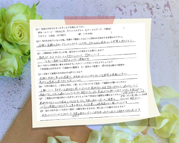 工期の遅れついて連絡がなく不安に感じましたが、自身のイメージや希望を理解していただいて好みに合った提案をして下さり感謝しております。愛知県春日井市 /K邸Q1:当社をお知りになったきっかけを教えてください ☑ ホームペー…
