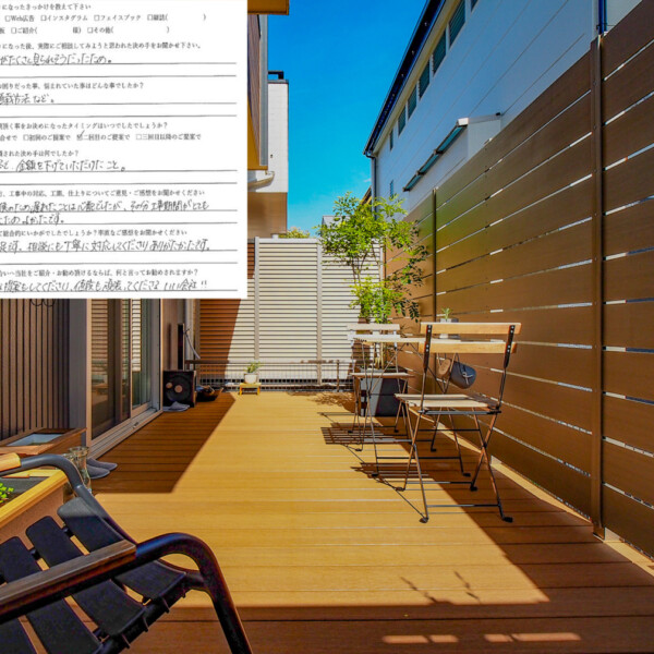 担当者さんの知識の豊富さと経験力が安心感として伝わってきました。価格もとても大切な要素ですが安心感でそこは賄えます。とても丁寧で安心できる会社だとオススメしたいです。名古屋市緑区/O邸Q1:当社をお知りになったきっかけを教えてください ☑ ホームペー…